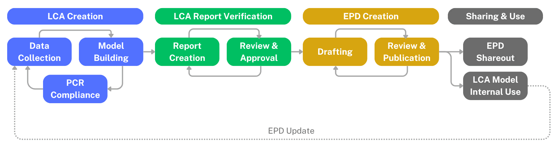 At a high level, creating an EPD follows four core steps, shown in the workflow above: